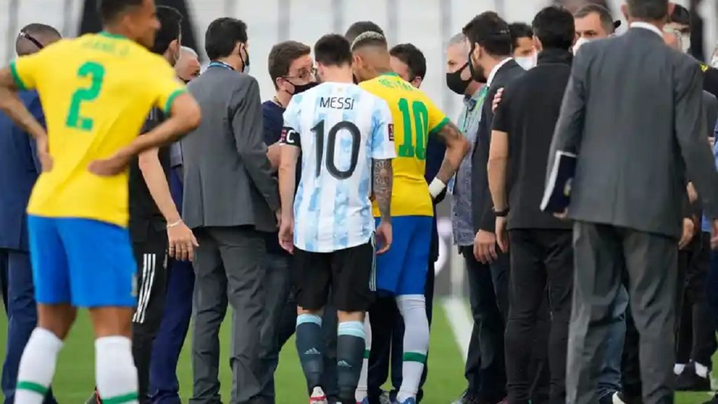 উল্লেখ্য, গত সেপ্টেম্বরে ইংল্যান্ডে খেলা চার আর্জেন্টাইন ব্রাজিলে ঢোকার পথে করোনা বিধিনিষেধ মানেননি এমন অভিযোগে মাঠে ঢুকে পড়েন ব্রাজিলের স্বাস্থ্য কর্মকর্তারা। এই নিয়ে বিবাদে জড়ায় দুই দল। শেষ পর্যন্ত ম্যাচ মাঠে গড়ালেও ৭ মিনিটেই বাতিল হয়ে যায় ম্যাচটি। সেসময় করোনার নিয়মে অনেক কড়াকড়ি ছিল। ব্রাজিল থেকে ইংল্যান্ডে ঢোকার ব্যাপারে কড়াকড়ি আরোপ করার পর কড়াকড়ি দেয় ব্রাজিলও। সূত্র: আর্জেন্টাইন গণমাধ্যম মুন্দো আলবিসেলেস্তে।