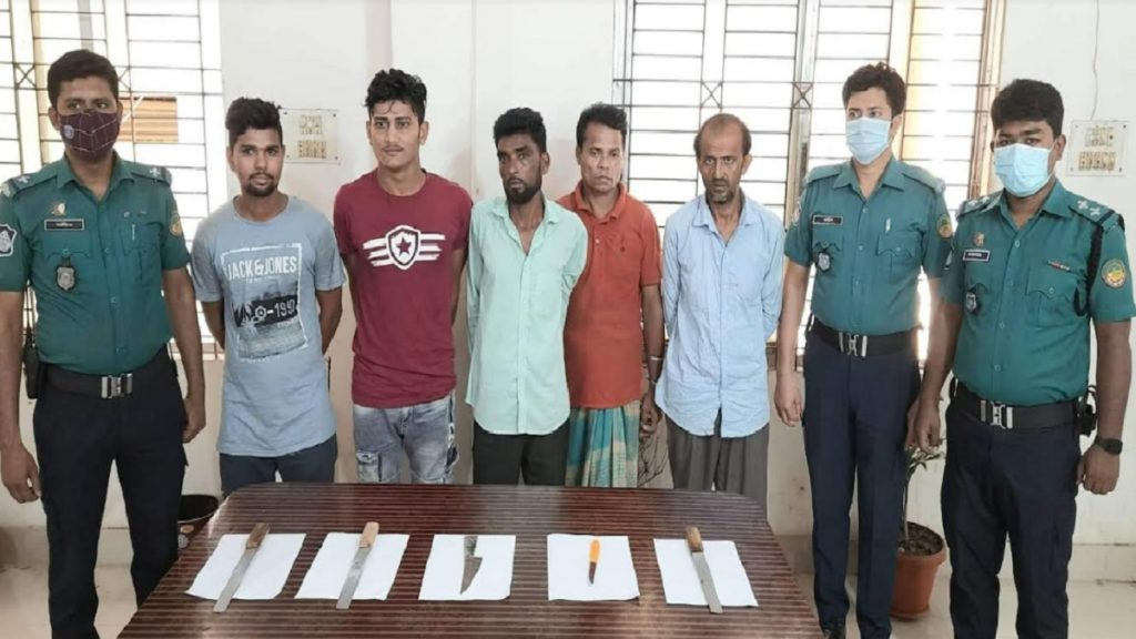 রোববার রাতে টঙ্গী হাজী মাজার বস্তি এলাকা থেকে তাদের গ্রেফতার করা হয়। গ্রেফতারকৃতরা হলেন, মাগুরা জেলার মৃত আকবর মোল্লার ছেলে নান্নু মিয়া (৪৫), গাজীপুর জেলার টঙ্গী হাজী মাজার বস্তি সোহেলের ছেলে জয় (১৯), একই এলাকার মৃত মোসলেম উদ্দিনের ছেলে বাবু বাবুর্চি (৪৮), কুমিল্লা জেলার মৃত ইদ্রিস আলীর ছেলে আব্দুল মামুন (৫১) ও হাজী মাজার বস্তি বাবুল মিয়ার ছেলে শরিফ হোসেন (২২)। তারা সকলে হাজী মাজার বস্তি এলাকায় বসবাস করতো।