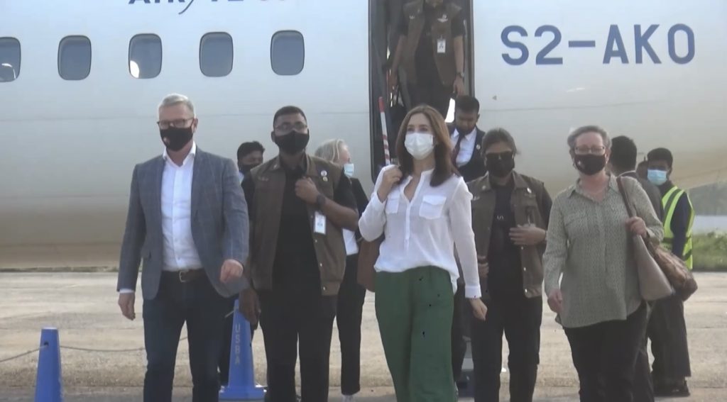 সোমবার (২৫ এপ্রিল) বিকেল সাড়ে ৪ টার দিকে বিশেষ একটি বিমানে করে ঢাকা শাহজালাল আন্তর্জাতিক বিমানবন্দর থেকে কক্সবাজার পৌঁছান ডেনমার্কের রাজকুমারী। কক্সবাজার বিমানবন্দরে তাকে অভ্যর্থনা জানান, কক্সবাজার জেলা প্রশাসক মামুনুর রশীদ, পুলিশ সুপার হাসানুজ্জামান ও ডেনমার্ক দূতাবাসের কর্মকর্তারা। এ সময় বিমানবন্দরসহ প্রধান সড়কে কড়া নিরাপত্তা ব্যবস্থা গড়ে তোলা হয়েছে।