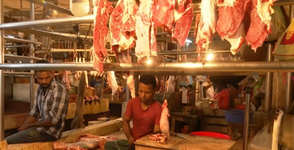ঈদের মৌসুমে সব ধরনের মাংসের দাম বেড়েছে। রাজধানীতে হাড়সহ গরুর মাংসের কেজি সাড়ে ৬০০ টাকা। আর হাড় বাদে কিনলে লাগবে আরও ৫০ টাকা। সাড়ে ৯০০ টাকার নিচে মিলছে না খাসির মাংস। ব্যবসায়ীদের দাবি, এই দামেও তাদের লাভ হচ্ছে না। চাহিদার তুলনায় গরু ও খাসির মাংস পাওয়া যাচ্ছে কম। বাধ্য হয়ে পোল্ট্রিতে ঝুঁকছেন ক্রেতারা। সুখবর নেই সেখানেও।