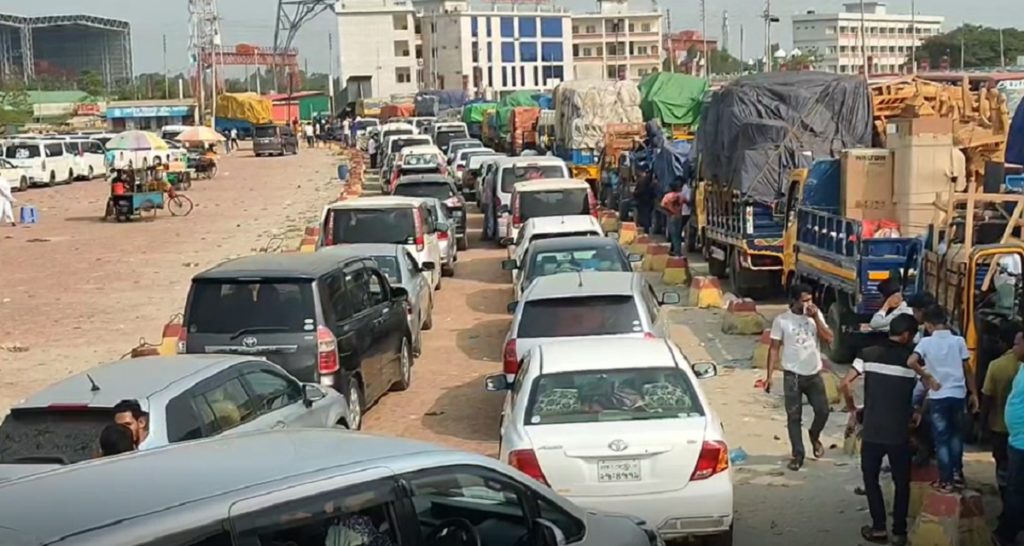 মুন্সিগঞ্জের শিমুলিয়া ঘাটে ঈদকে কেন্দ্র করে ঘরমুখো মানুষ ও যানবাহনের চাপ বেড়েছে কয়েকগুণ। ফেরিযোগে শিমুলিয়া-বাংলাবাজার ও মাঝিকান্দি নৌরুটে পদ্মা নদী পাড়ি দিয়ে গন্তব্যে পৌঁছাতে ঘাটে আসছে সারি সারি যানবাহন। বুধবার (২৭ এপ্রিল) সকাল থেকে পারাপারের অপেক্ষায় ঘাটে শতশত ব্যাক্তিগত যানবাহনে উপস্থিতি৷ তবে লঞ্চ ও স্পিডবোটে যাত্রী স্বাভাবিক ছিল।