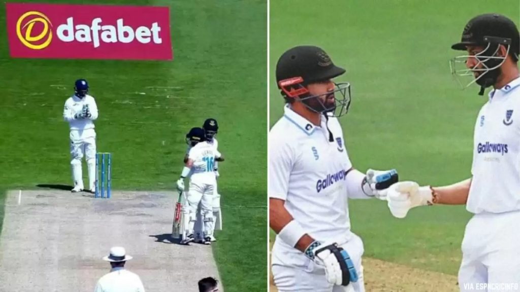 ভারতীয় জাতীয় দলের টেস্ট ক্রিকেটার চেতেশ্বর পুজারা ও পাকিস্তানের উইকেটরক্ষক ব্যাটার মোহাম্মদ রিজওয়ান কাউন্টি ক্রিকেটে খেলছেন সাসেক্সের হয়ে। ব্যাটিংয়ে নেমে দুজনে মিলে গড়েছেন ১৫৪ রানের জুটি। ইনিংসে ডাবল সেঞ্চুরির দেখা পেয়েছেন পুজারা। ৩৩৪ বলে করেছেন ২০৩ রান। ডাবল সেঞ্চুরির মাইলফলকে পৌঁছাতেই তাকে জড়িয়ে ধরেন পুজারা। যেই ছবি সামাজিক যোগাযোগমাধ্যমে ভাইরাল হয়েছে। রান পেয়েছেন রিজওয়ানও। ১৪৫ বল খেলে তার সংগ্রহ ৭৯ রান।