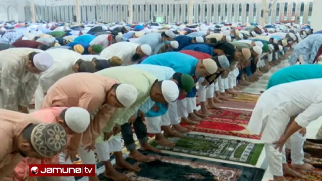 এদিকে জাতীয় ঈদগাহ ময়দানে সকালে সাড়ে আটটায় শেষ ঈদের জামাত অনুষ্ঠিত হয়েছে। ঈদগাহে মানুষের উপচে পড়া ভিড়। ঢাকাসহ আশপাশের এলাকা থেকে হাজার হাজার মুসল্লি অংশ নেন। উন্মুক্ত জায়গায় নামাজ আদায় করে খুশি মুসল্লিরা। সবার দেশের করোনা মুক্ত ও সকলের মঙ্গল কামনা করেন।