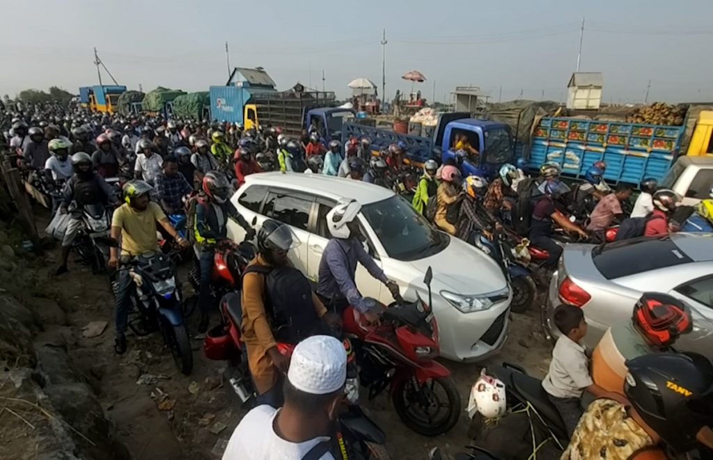 এদিকে, রাজবাড়ীর দৌলতদিয়া ফেরিঘাটেও সকাল থেকেই যানবাহনের চাপ লক্ষ্য করা গেছে। কয়েক কিলোমিটার পর্যন্ত যানজট দেখা দিয়েছে।