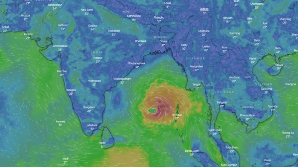 রোববার (৮ মে) মধ্যরাতে বঙ্গোপসাগরে থাকা ঝড়টি প্রবল ঘূর্ণিঝড়ে রূপ নেয়। এটি আরো উত্তর-পশ্চম দিকে অগ্রসর হয়ে ভারতের বিশাখাপত্তমের দিকে অগ্রসর হচ্ছে। ঘূর্ণিঝড়টি চট্টগ্রাম সমুদ্র বন্দর থেকে ১১১৫ কিলোমিটার দক্ষিণ পশ্চিমে, কক্সবাজার সমুদ্র বন্দর থেকে ১০৪৫ কিলোমিটার দক্ষিণ পশ্চিমে, মোংলা সমুদ্র বন্দর থেকে ১০৭০ কিলোমিটার দক্ষিণ এবং পায়রা সমুদ্র বন্দর থেকে ১০৩৫ কিলোমিটার দক্ষিণে অবস্থান করছে। এটি আরো ঘনীভূত হয়ে উত্তর-পশ্চিম দিকে অগ্রসর হতে পারে বলে জানিয়েছে আবহাওয়া অধিদফতর।