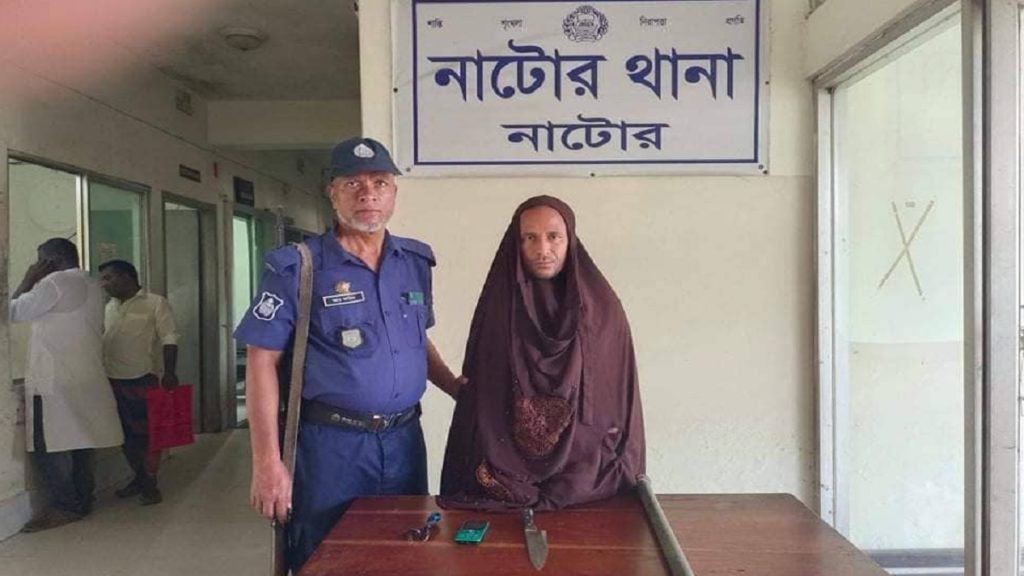 নাটোরে বোরকা পরে নারীরূপ ধারণ করা মামুন হোসেন নামে এক ছিনতাইকারীকে গ্রেফতার করেছে পুলিশ। বৃহস্পতিবার (১২ মে) ভোর পাঁচটার দিকে শহরের বনবেলঘড়িয়া পশ্চিম বাইপাস এলাকা থেকে তাকে গ্রেফতার করা হয়। গ্রেফতারকৃত মামুন একই এলাকার মৃত বাহার উদ্দিনের ছেলে।