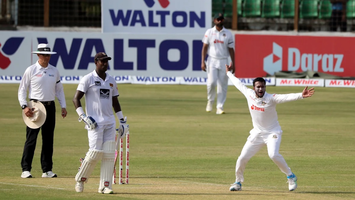 এর আগে, এর আগে, ৪ উইকেটে ২৫৮ রান নিয়ে প্রথম দিনের খেলা শেষ করে লঙ্কানরা। দলীয় ২৩ রানে দিমুথ করুনারত্নেকে ফেরান নাঈম হাসান। এরপর ৬৬ রানে আরেক ওপেনার ওসাদা ফার্নান্দোকেও ফেরান একই বোলার। তবে ৩য় উইকেট জুটিতে কুশাল মেন্ডিস আর অ্যাঞ্জেলো ম্যাথিউস ৯২ রানের জুটি গড়ে তোলেন। মেন্ডিস ৫৪ রান করে তাইজুলের শিকার হন। এরপর ধানাঞ্জায়াকে ফেরান সাকিব আল হাসান। দিন শেষে ১১৪ রানে অপরাজিত থাকা অ্যাঞ্জেলো ম্যাথুস আজও আছেন দারুণ ছন্দে।