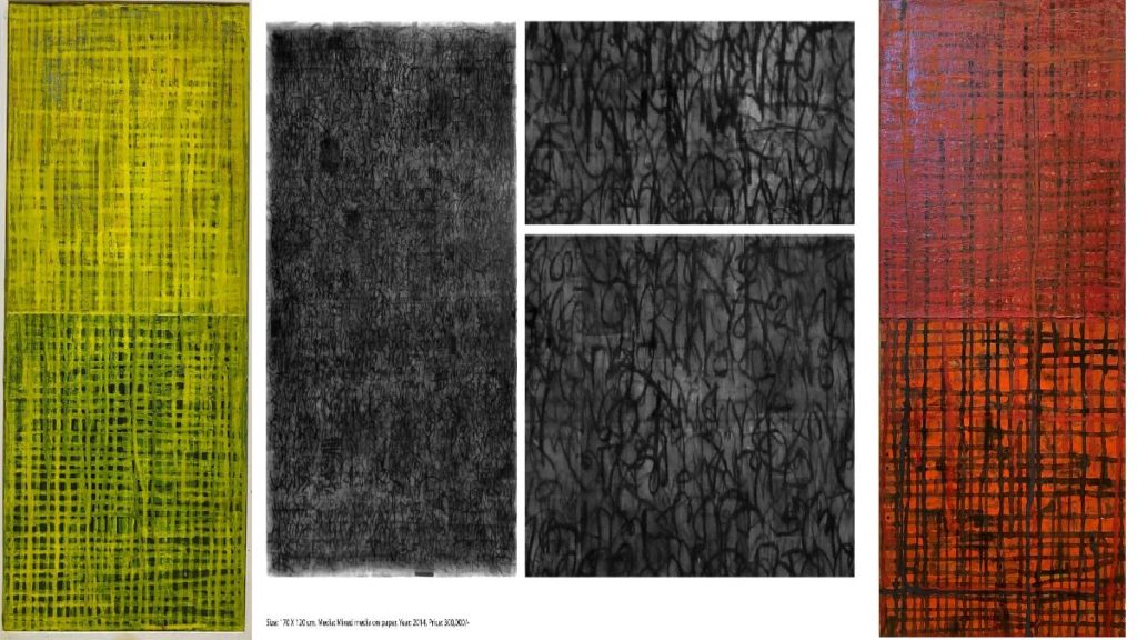 গ্যালারি কলা কেন্দ্রের দেয়ালে শিল্পের সংযম কীভাবে হতে পারে, কী ফর্মে, রেখায়, বর্ণে তা পরতে পরতে দেখিয়েছেন। সকল দিক থেকে সংযত তিনি, শুধু কী শিল্পে? তা মনে হয় না, বলা হয় একজন শিল্পীর জীবনপ্রণালী তার শিল্পের সাথে সহাবস্থান প্রক্রিয়া নির্ণয় করে।