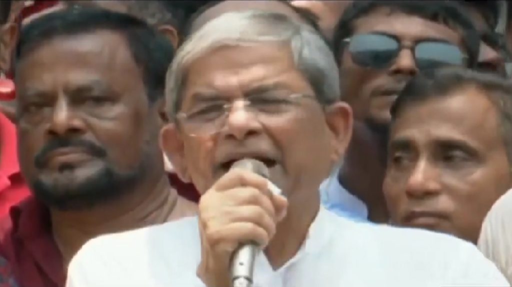 মির্জা ফখরুল বলেন, দেশের রাজনীতি এখন যুগসন্ধিক্ষণে। গণতন্ত্র বিনাশী শক্তি আওয়ামী লীগ, যারা জোর করে ক্ষমতায় টিকে আছে। এই জাতির দুর্ভাগ্য যে, আমরা দেখছি আওয়ামী লীগের খুনিবাহিনী রাস্তায় ফেলে আমাদের সন্তানদের অত্যাচার করছে। হাইকোর্টের ভেতর ঢুকেও আমাদের সন্তানদের অত্যাচার করেছে। আমরা সমস্ত রাজনৈতিক দলগুলোকে নিয়ে এক হওয়ার চেষ্টা করছি। পদ্মা সেতু থেকে বেগম খালেদা জিয়াকে ফেলে দেয়া হবে বলা হয়েছে। কিন্তু পদ্মা সেতু কারো নিজস্ব সম্পদ দিয়ে তৈরি হয়নি। দেশের মানুষ এখন আওয়ামী লীগকে ভয় পায়। দেশকে আওয়ামী লীগের মতো দানব মুক্ত করাই এখন মানুষের মুক্তির একমাত্র পথ।