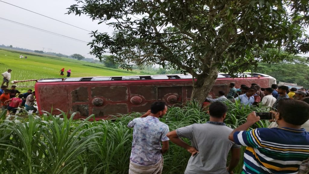পাবনার অতিরিক্ত পুলিশ সুপার মাসুদ আলম দুর্ঘটনার সত্যতা নিশ্চিত করে বলেন, ঘটনার সময় সিরাজগঞ্জের শাহজাদপুর থেকে পাবনায় যাচ্ছিল মুহাম্মদ এক্সপ্রেস নামের একটি যাত্রীবাহী বাস। পথিমধ্যে পাবনা-কাশিনাথপুর মহাসড়কের আতাইকুলার মধুপুর গোরস্তানের কাছে চালক নিয়ন্ত্রণ হারালে বাসটি রাস্তার পাশে খাদে উল্টে যায়। এ সময় ঘটনাস্থলেই দুই নারী নিহত হন। গুরুতর আহত অন্তত ১৫ জনকে পাবনা জেনারেল হাসপাতালে ভর্তি করা হয়েছে। খবর পেয়ে মাধপুর হাইওয়ে পুলিশ দু’জনের মরদেহ উদ্ধার করে।