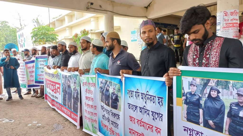 জানা গেছে, নরসিংদী রেলস্টেশনের প্রধান ফটকের সামনে আয়োজিত এ মানববন্ধনে স্থানীয় স্বেচ্ছাসেবী সংগঠনসহ বিভিন্ন মসজিদের মুসল্লিরা অংশ নেন। মানববন্ধন থেকে অবিলম্বে গ্রেফতারকৃত শিলার মুক্তির দাবির পাশাপাশি নারীদের পোষাক পরিধানে আরও সংযত হওয়ার আহ্বান জানানো হয়।