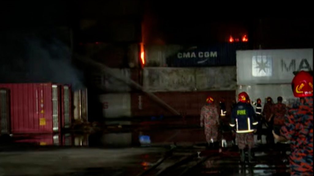 ওই এলাকার মধ্যে থাকা কনটেইনারগুলো কাপড়ের বলে জানা গেছে। রাসায়নিক দ্রব্যের কনটেইনার আছে কিনা তা নিশ্চিত হওয়া যায়নি।