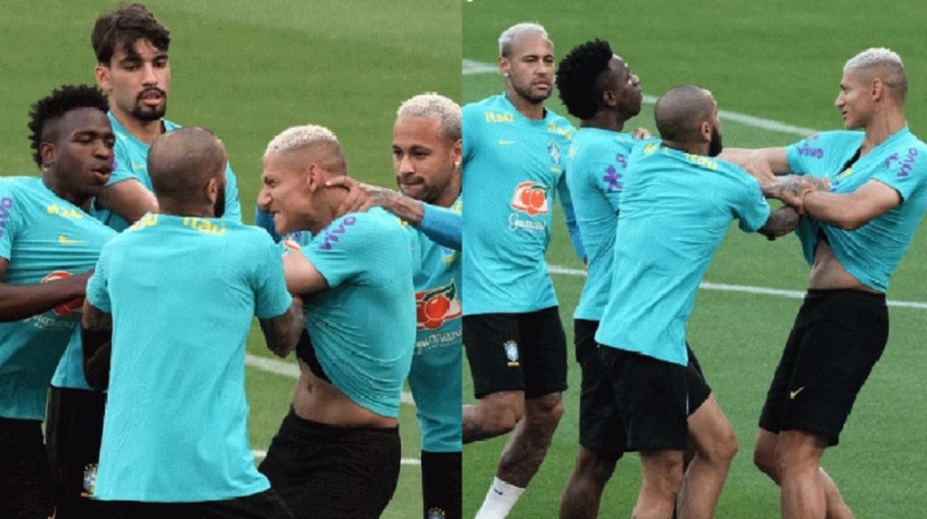 ছবিক্রম দেখলে মনে হয়, নেইমার-আলভেসদের চেষ্টা সত্ত্বেও রিচার্লিসন যের আরও আগ্রাসী! নেইমারের হাত ছাড়িয়ে ভিনিসিয়ুসের গলা চেপে ধরেন এভারটনের উইঙ্গার। এরপর বাকিরা মিলে তাদের জোর করে আলাদা করেন এবং দূরে সরিয়ে নিয়ে যান। ছবিগুলো প্রকাশ্যে আসতেই সামাজিক যোগাযোগ মাধ্যমে ঝড় তুলেছে। তবে অনেকেই এ ঘটনাকে নিছক মজা হিসেবে উল্লেখ করেছেন। এবং ভিডিওচিত্র সেই মতটিকে সমর্থন করছে। অর্থাৎ আপাতদৃষ্টিতে হাতাহাতি মনে হলেও এটি ছিল খেলোয়াড়দের মধ্যকার দুষ্টুমি।