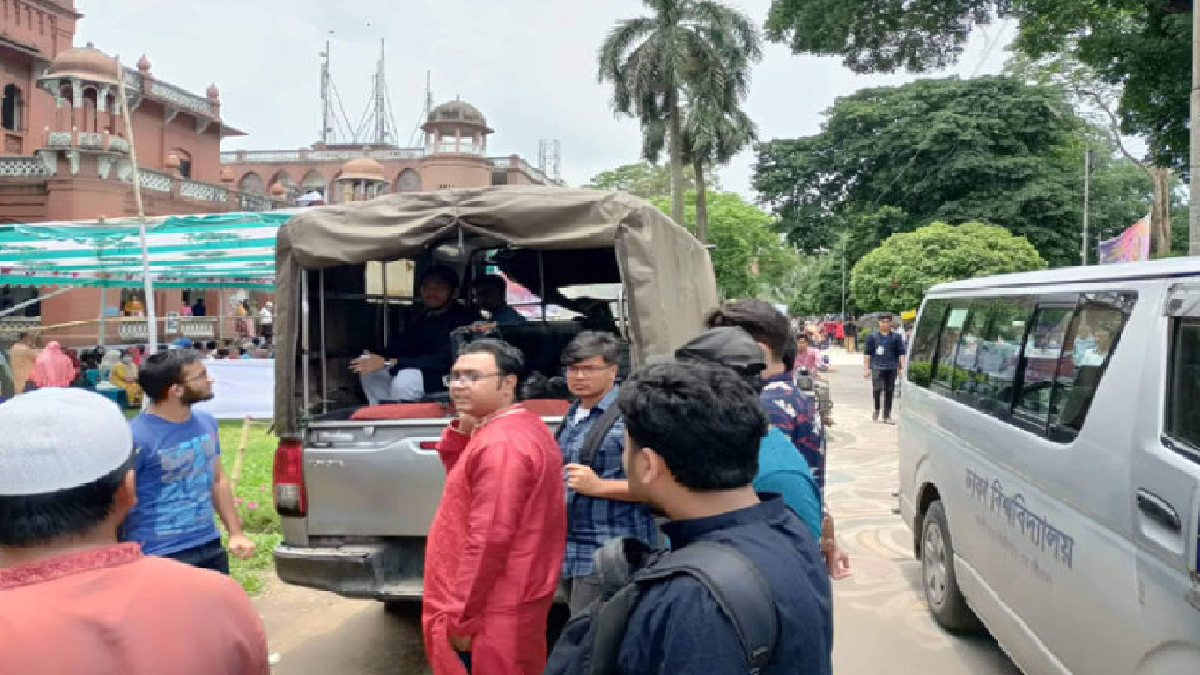বিশ্ববিদ্যালয়ের উপাচার্য অধ্যাপক ড. মো. আখতারুজ্জামান কার্জন হলে পরীক্ষা পরিদর্শনে আসলে তারা ওই সময় দরজার বাইরে থেকে কেন্দ্রের ভেতরের ছবি তোলেন। বিষয়টির সত্যতা নিশ্চিত করে বিশ্ববিদ্যালয়ের প্রক্টর অধ্যাপক ড. এ কে এম গোলাম রব্বানী জানান, আটককৃতরা ভর্তিচ্ছুদের সঙ্গে এসেছেন। তাদের মধ্যে সিয়াম নামে একজনের বাসা কুষ্টিয়ায়। অপরজনের নাম মাশরাফি, তার বাসা ফেনীতে। তাদের মোবাইল জব্দ করা হয়েছে।