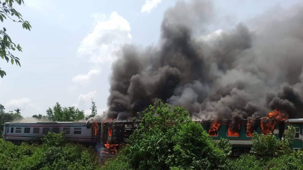 মৌলভীবাজারের কমলগঞ্জের শমসেরনগর রেল স্টেশনের কাছে ঢাকা থেকে সিলেটগামী পারাবত এক্সপ্রেস ট্রেনে আগুন লেগে তিনটি বগি পুড়ে গেছে।