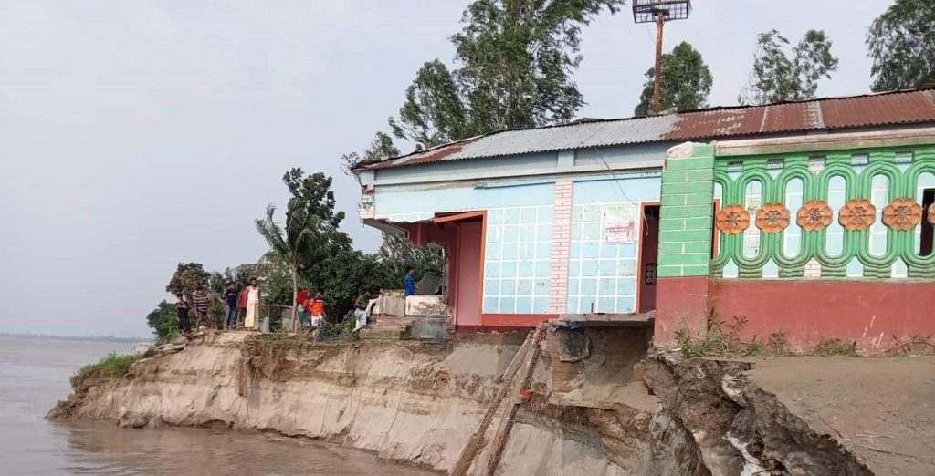 যমুনা নদীতে পানি বৃদ্ধি অব্যাহত থাকায় এবার বিলীন হলো ঐতিহ্যবাহী সেই তারকা মসজিদ। সোমবার (১৩ জুন) দুপুরে সিরাজগঞ্জের এনায়েতপুর থানা সদরের ব্রাহ্মণগ্রামের বহু পুরনো নান্দনিক নকশায় নির্মিত মসজিদটি নদীগর্ভে বিলিন হয়ে গেছে। এছাড়া গত এক সপ্তাহে প্রায় ৪০টি বসতভিটা চলে গেছে যমুনার গর্ভে। চোখের সামনে নামাজের ঘর বিলীন হওয়ায় কান্নায় ভেঙে পড়েছেন এলাকাবাসী। তাদের অভিযোগ, ভাঙন রোধে সংশ্লিষ্টরা সঠিক সময়ে যথাযথ পদক্ষেপ গ্রহণ করলে এমন পরিস্থিতির সৃষ্টি হতো না। অন্যদিকে সংশ্লিষ্টদের দাবি, ভাঙন ঠেকাতে জিওব্যাগ ফেলা হচ্ছে। স্থায়ী বাধের কাজ চলমান রয়েছে।