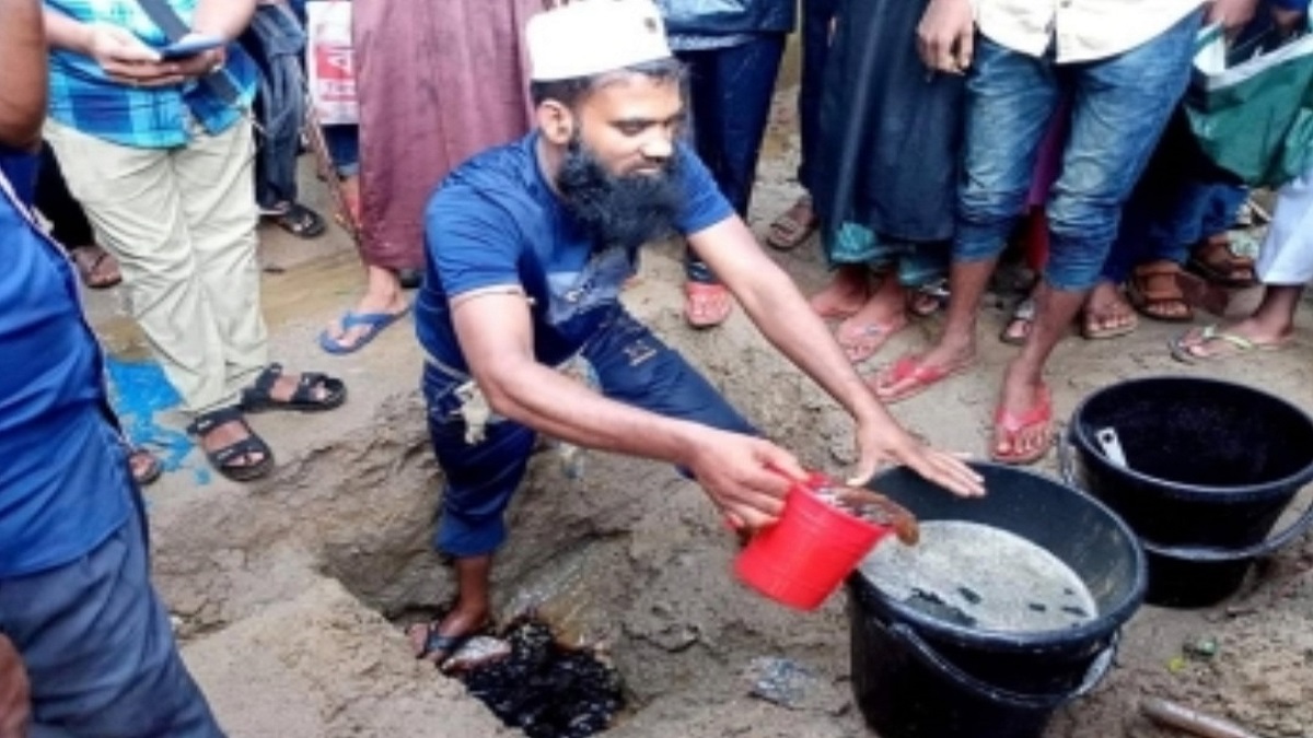 নেত্রকোণার দুর্গাপুর পৌর শহরের কাচারি মোড় এলাকায় মোজাম্মেল হকের বাসার পাশে বিদ্যুতের খুঁটি পুততে গিয়ে গর্ত থেকে অনবরত বের হতে থাকে কালো জ্বালানি তেলের মতো তরল দ্রব্য। এমন খবরে এলাকায় চাঞ্চল্যকর পরিস্থিতি সৃষ্টি হয়েছে। বৃহস্পতিবার (১৬ জুন) দুপুরের দিকে এ ঘটনা ঘটে।