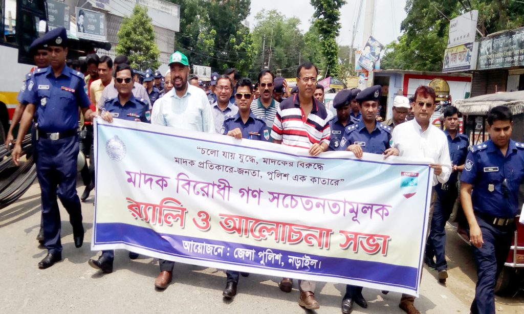 আজ মঙ্গলবার জেলা পুলিশ আয়োজনে বেলা ১১টায় নড়াইল প্রেসক্লাব চত্বর থেকে র্যালি শুরু হয়ে শহরের প্রধান প্রধান সড়ক প্রদক্ষিণ শেষে একই স্থানে এসে শেষ হয়। পরে নড়াইল প্রেসক্লাব চত্বরে পথসভা অনুষ্ঠিত হয়।