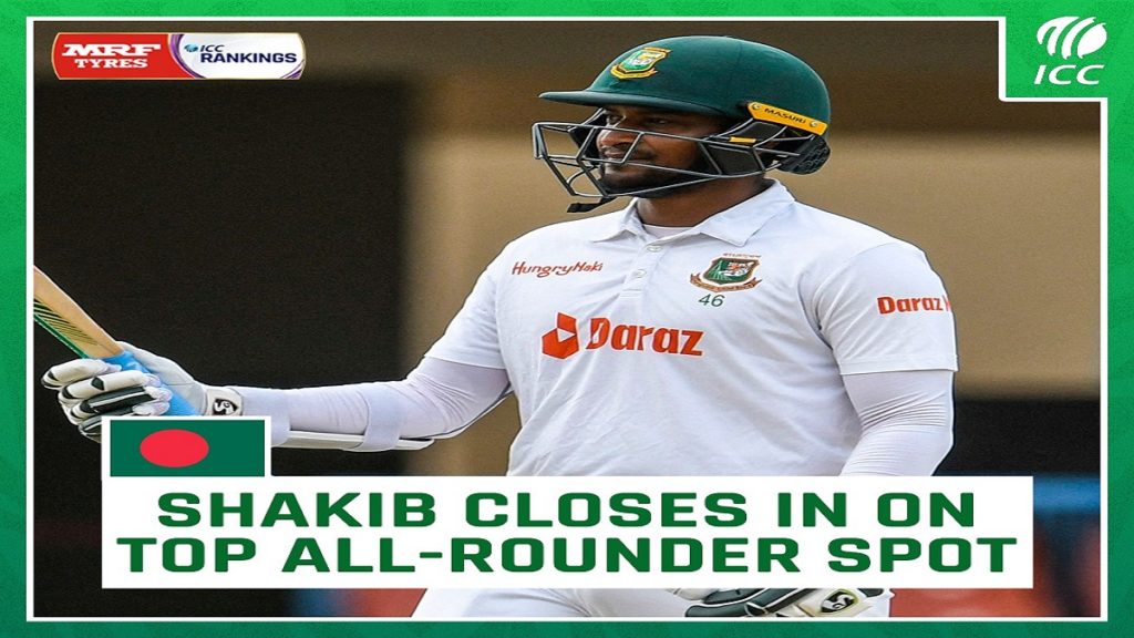 ওয়েস্ট ইন্ডিজের জেসন হোল্ডার ও ভারতের রবিচন্দ্রন অশ্বিনকে পেছনে ফেলে টেস্ট অলরাউন্ডার র্যাংকিংয়ে দ্বিতীয় স্থানে সাকিব। তার সামনে এখন শুধু ভারতের রবিন্দ্র জাদেজা।