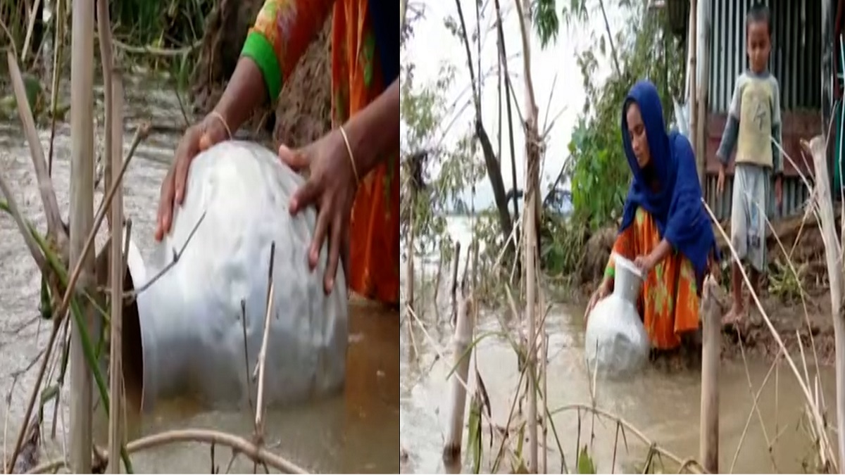 নিরুপায় হয়ে সন্তানসহ বানের পানিই পান করছেন ইব্রাহিম ও সুফিয়া, ইতোমধ্যেই অসুস্থ হয়ে পড়েছে তাদের দুই সন্তান।