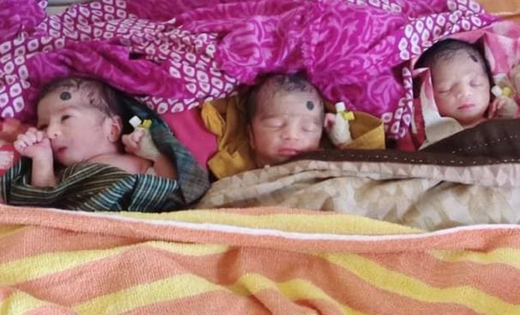 দিয়েছেন। বৃহস্পতিবার (২৩ জুন) রাতে ওই হাসপাতালের চিকিৎসক ডা. আফরিন সুলতানা সিজারের মাধ্যমে ওই তিন শিশুর প্রসব করান। চিকিৎসক জানিয়েছেন শিশু তিনজন ও মা সুস্থ আছেন। নবজাতক ওই তিন শিশুর নাম রাখা হয়েছে স্বপ্ন, পদ্মা ও সেতু।