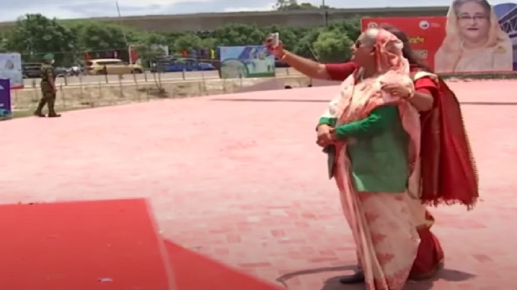 বৈশ্বিক দাতাদের চোখ রাঙানিকে বৃদ্ধাঙ্গুলি দেখিয়ে জাতিগত স্পর্ধা প্রদর্শনের দিনে আবেগাপ্লুত সমগ্র জাতি। সরকার প্রধানকেও এই আবেগ ছুঁয়ে গেছে। বিশেষ করে জাতির অহম প্রকাশের ঝুঁকিপূর্ণ সিদ্ধান্ত ও তার সফল বাস্তবায়নের পর তিনিই তো আজ সবার আনন্দের মধ্যমণি। সেতুর উদ্বোধন ঘোষণা ও ফলক উন্মোচনের কিছুক্ষণ পর মাওয়া প্রান্তে কন্যা সায়মা ওয়াজেদ পুতুলের সেলফিও তাই মাকে ঘিরেই। প্রোটোকলের কিছুটা বাইরে গিয়েই এ সময় মা-মেয়ে নিজেদের কিছু স্মৃতি ধরে রাখেন মুঠোফোনে।
