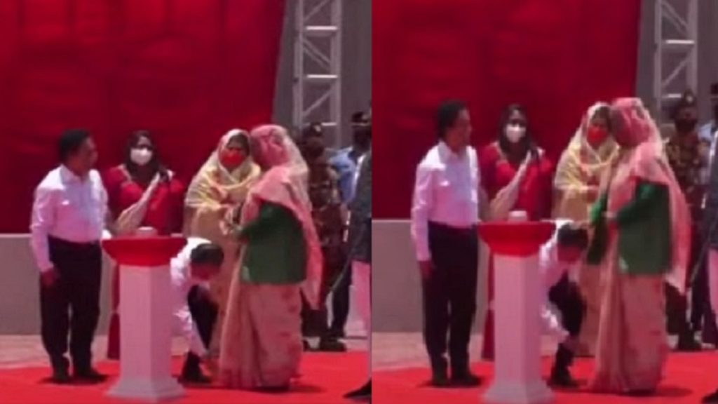পদ্মা সেতুর উদ্বোধনী অনুষ্ঠানে কুশল বিনিময় করে প্রধানমন্ত্রীর পা ছুঁয়ে সালাম করেন সাবেক যোগাযোগমন্ত্রী সৈয়দ আবুল হোসেন। শনিবার (২৫ জুন) মাওয়া প্রান্তে সুইচ টিপে পদ্মা সেতু উদ্বোধন করেন প্রধানমন্ত্রী শেখ হাসিনা। এ সময় প্রধানমন্ত্রীর পাশে ছিলেন সৈয়দ আবুল হোসেন। তখন প্রধানমন্ত্রীকে সালাম করেন তিনি। প্রধানমন্ত্রীও তার মাথায় হাত রেখে আশীর্বাদ করেন।
