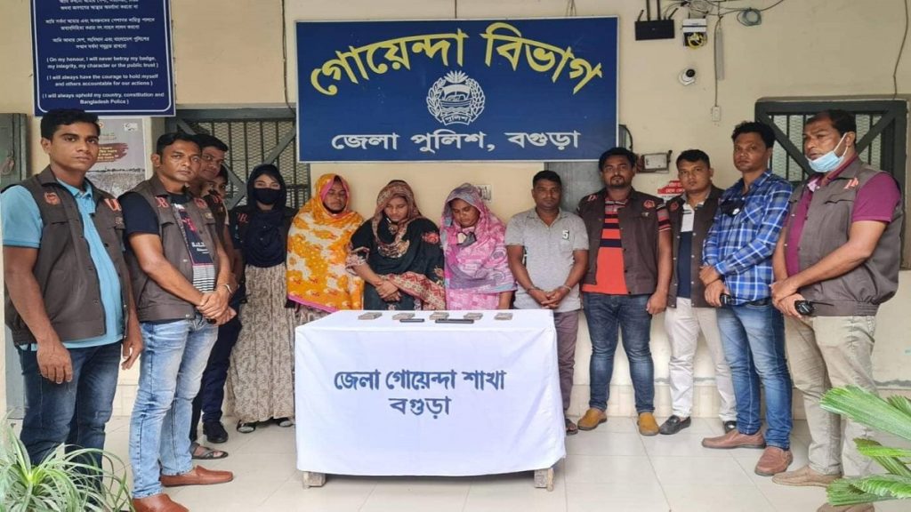 বুধবার (২৯ জুন) ওই ৪ জনকে গ্রেফতার করেছে বগুড়ার গোয়েন্দ পুলিশ। এ সময় তাদের কাছ থেকে হাতিয়ে নেয়া ৫ লাখ টাকাও জব্দ করে পুলিশ।