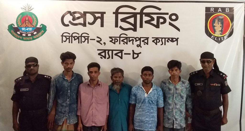 আটককৃতরা হলো, সদর উপজেলার বাখুন্ডা এলাকার মো. লিটন শেখ (৩০), নাসিমা বেগম ওরফে কমলা (৫০), নাইমুজ্জামান রাজু (১৯), তানজিলা আক্তার (১৯), ফতেহপুর এলাকার শারমিন বেগম লিপি (৩৩), মো মোস্তাক খান (৪০), কাফুরা এলাকার শেখ আলাউদ্দিন (৬০) ও শেখ আফজাল (৩৫)।