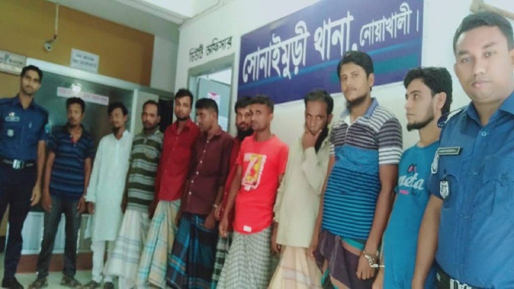 গ্রেফতারকৃতরা হলো, উপজেলার নাটেশ্বর ইউনিয়নের ৫নম্বর ওয়ার্ডের বাসিন্দা মো. ইয়াছিন (৩০), মো. জয়নাল উদ্দীন (৪০), মো. দেলোয়ার হোসেন (৩২), মো. ইউসুফ আলী স্বপন (৩৫), সাখায়েত উল্যাহ শিমল (৪০), ও পার্শ্ববর্তী বেগমগঞ্জ উপজেলার মো. ইয়াছিন (৩২), একরাম হোসেন বাবু (২৮), আবুল হোসেন বাবু (৩২), আবদুর রব রাজু (৩০) ও মো. আমির হোসেন (৩৮)।