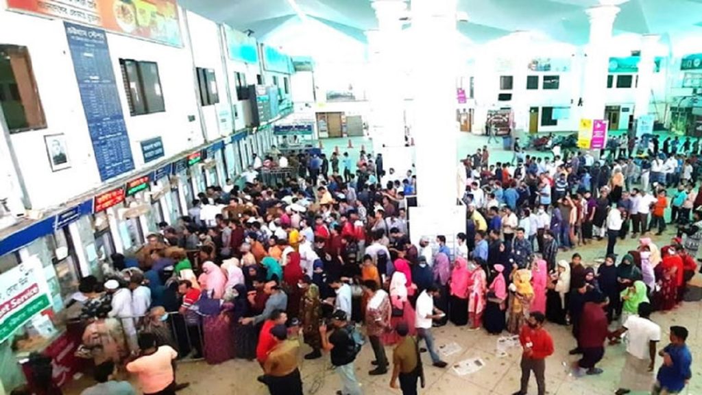 ইদের টিকেট বিক্রির দ্বিতীয় দিনে চট্টগ্রাম রেলওয়ে স্টেশনে টিকেট প্রত্যাশীদের ভিড় কিছুটা বেড়েছে।
