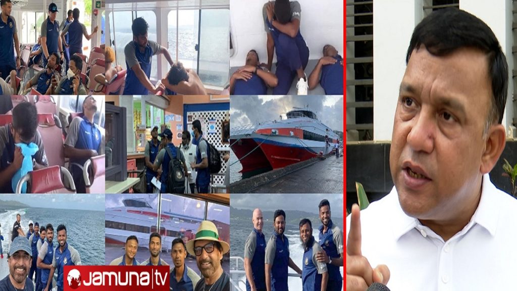 মাঠে যারা খেলেন হরহামেশাই তাদের লড়তে হয় বিরুদ্ধ পরিস্থিতির সাথে। চ্যালেঞ্জ আর লড়াই তাই তো তাদের জীবনের অংশ। সমুদ্র পথে সেন্ট লুসিয়া থেকে ডমিনিকা যাওয়ার পথে সমুদ্রে এমন কঠিন পরিস্থিতির মুখোমুখি হতে হয় টাইগারদের। উত্তাল সমুদ্রে মোসন সিকনেসে পেয়ে বসে শরিফুল-মুনিমদের। প্রশ্ন ওঠে বিসিবির পেশাদারিত্ব নিয়ে। কিন্তু টিম ডিরেক্টর খালেদ মাহমুদ প্রশ্ন তুলেছেন অন্য কিছু নিয়ে।