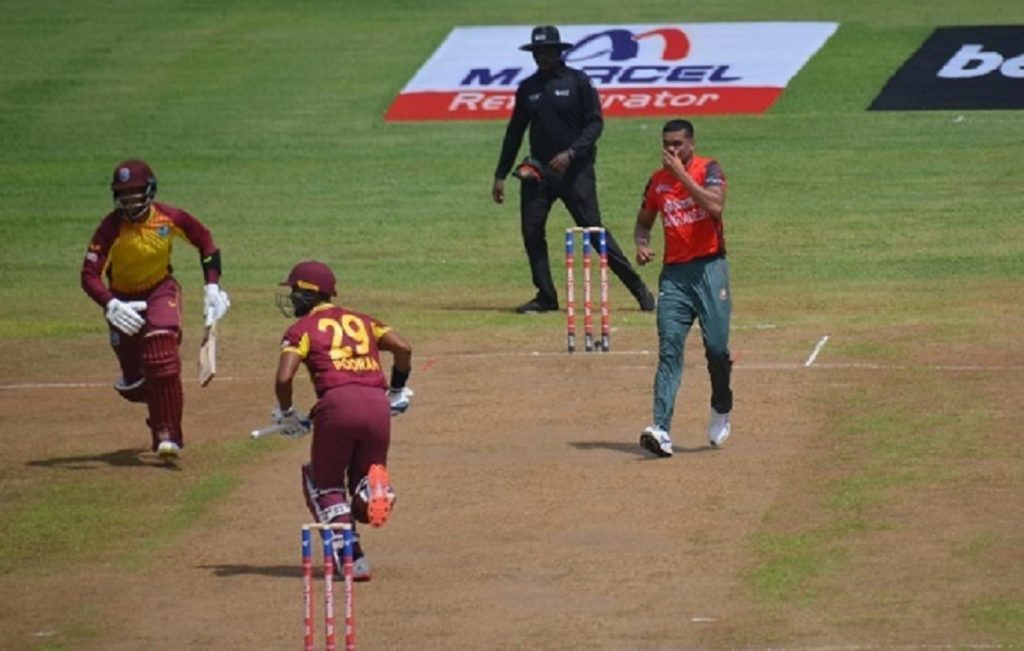 দলীয় ১০০ রানের মাথায় পুরানকে ফেরানে মোসাদ্দেক হোসেন সৈকত। ৩০ বলে ৩টি চার ও একটি ছক্কায় ৩৪ রান করেন পুরান। স্বাগতিকদের অধিনায়ককে ফিরিয়ে যেন নিজেদের বিপদ ডেকে আনে বাংলাদেশ। শুরুর কয়েকটা বল দেখে তাণ্ডব চালান রভম্যান পাওয়েল। চার-ছক্কার ফুলঝুরিতে সাকিব-তাসকিনদের লাইন-লেংন্থ ভুলিয়ে দেন তিনি।