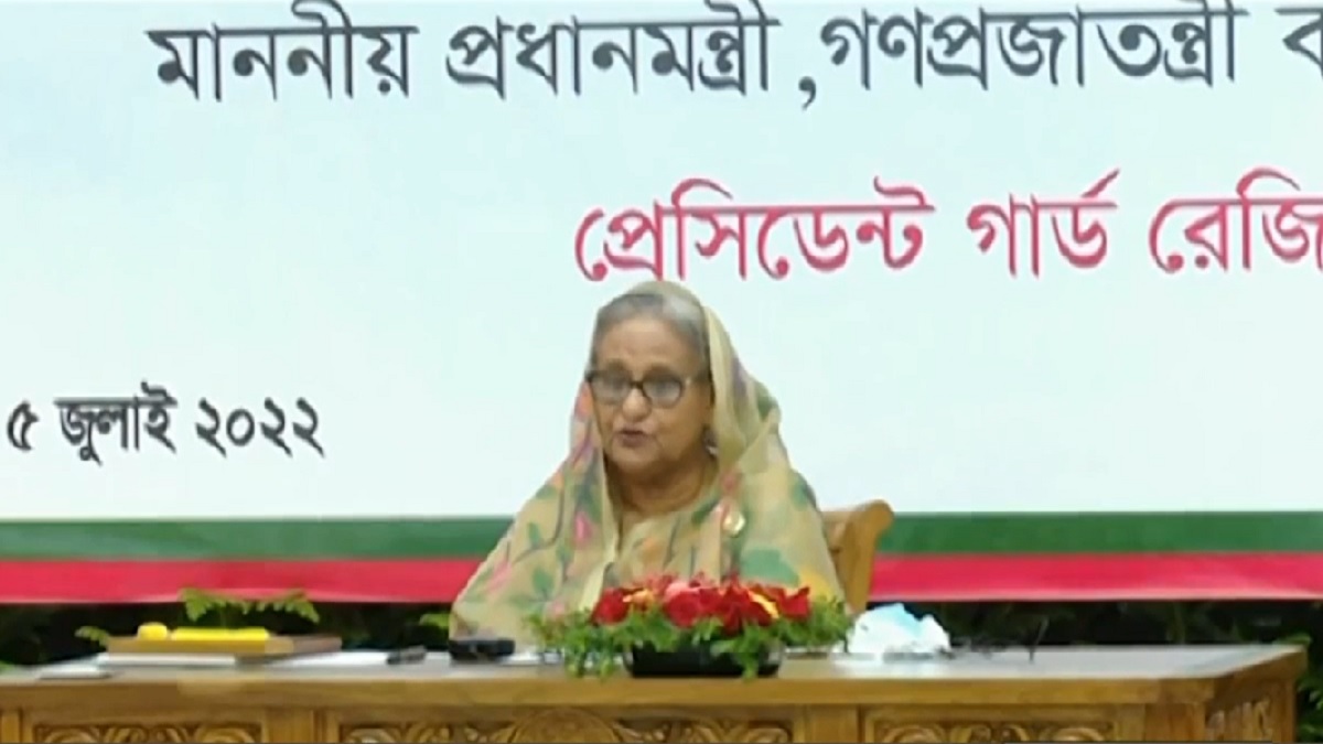 মঙ্গলবার (৫ জুলাই) সকালে ভার্চুয়ালি অনুষ্ঠানে যোগ দেন তিনি। প্রতিষ্ঠাবার্ষিকী উপলক্ষ্যে প্রেসিডেন্ট গার্ড রেজিমেন্ট’র সদস্যদের শুভেচ্ছা জানান প্রধানমন্ত্রী। নিজেদের জীবন বিপন্ন করে দায়িত্ব পালন করায় তাদের প্রতি কৃতজ্ঞতা জানান তিনি। শেখ হাসিনা বলেন, কোভিড ও রাশিয়া-ইউক্রেন যুদ্ধের কারণে পুরো বিশ্ব এখন অস্থির। তার প্রভাব বাংলাদেশেও পড়েছে। বিদ্যুৎ, জ্বালানি, খাদ্যসহ সব বিষয়ে দেশের মানুষদের সাশ্রয়ী হওয়ার আহ্বান জানান তিনি। বলেন, সব প্রতিবন্ধকতা পেরিয়ে পদ্মা সেতু নির্মাণ করা হয়েছে। যা বাংলাদেশকে পুরো বিশ্বে নতুন করে পরিচয় করিয়েছে।