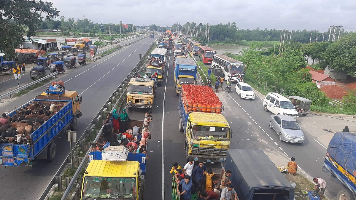 ঢাকা-টাঙ্গাইল বঙ্গবন্ধুসেতু মহাসড়কে যানবাহনের চাপ।