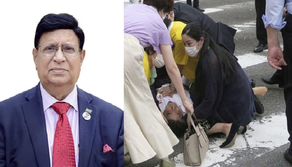 জাপানের সাবেক প্রধানমন্ত্রী শিনজো আবের গুলিবিদ্ধ হওয়ার ঘটনার নিন্দা জানিয়েছেন পররাষ্ট্রমন্ত্রী ড. এ কে আব্দুল মোমেন। এ নিয়ে পররাষ্ট্র মন্ত্রণালয়ের পক্ষ থেকে একটি প্রেস বিজ্ঞপ্তি প্রকাশ করা হয়েছে। সেখানে পররাষ্ট্রমন্ত্রী এ ঘটনাকে অত্যন্ত দুঃখজনক অভিহিত করে শিনজো আবের দ্রুত সুস্থতা কামনা করেছেন।