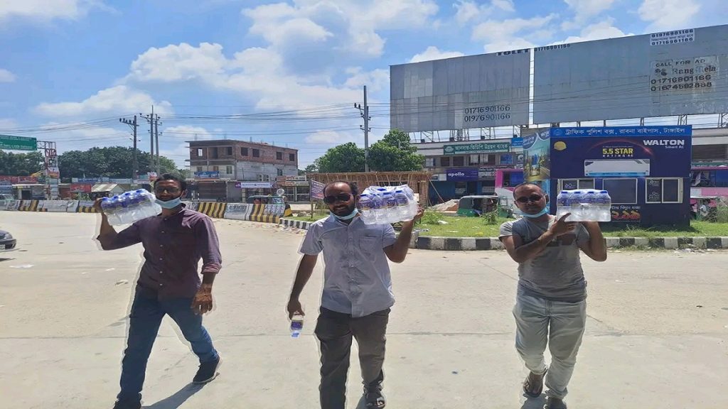এমন ঘটনা ঘটেছে মহাসড়কের টাঙ্গাইলের কালিহাতী উপজেলার মিরহামজানি গ্রামে। ওই গ্রামের বেল্লাল হোসেন, লাল মিয়া, সেলিম, ফরিদসহ যুবকরা শনিবার (৯ জুলাই) সকাল থেকে প্রচণ্ড গরমে হাজার হাজার মানুষের মাঝে পানি সরবরার করছে। আশে পাশের গ্রামের বৃদ্ধ নারীরা বিনা টাকায় পানি ও গাছের বিভিন্ন ফল সরবরাহ করছে।