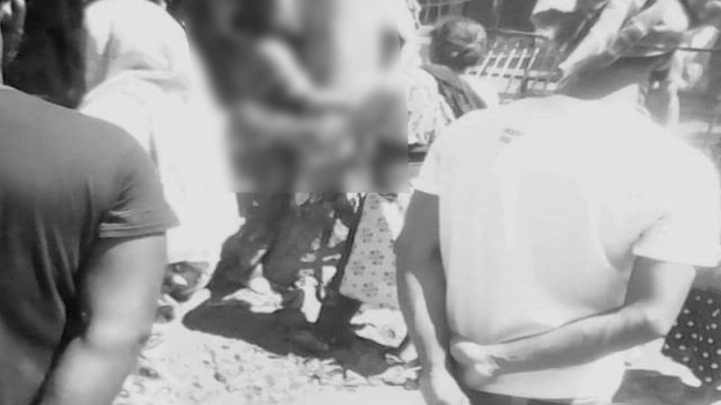 এক পর্যায়ে তারা তাকে টেনে হিঁচড়ে বাড়ির বাইরে নিয়ে দড়ি দিয়ে প্রথমে গাছের সাথে বাঁধে। পরবর্তীতে তাকে বিবস্ত্র করে। দীর্ঘ সময় নিয়ে শতাধিক মানুষের সামনে বর্বরোচিত ঘটনা ঘটলেও ভয়ে কেউ