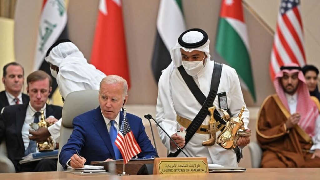মার্কিন প্রেসিডেন্ট জো বাইডেনের মধ্যপ্রাচ্য সফরসূচির সবশেষে ছিল আরব দেশগুলোর সাথে সম্মেলন। শনিবারের বৈঠকে উপসাগরীয় দেশগুলোর জোট, জিসিসির ৬ সদস্যরাষ্ট্র ছাড়াও যোগ দেন জডার্ন, মিসর, ইরাকের নেতারা। আঞ্চলিক নিরাপত্তা এবং উন্নয়ন ছিল আলোচনার মূল ইস্যু।