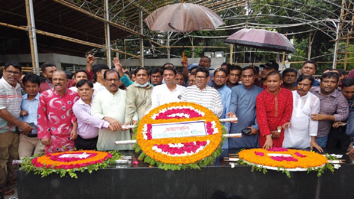 মঙ্গলবার (২৬ জুলাই) সকাল ১১টায় ধানমন্ডি-৩২ এ কেন্দ্রীয় ও মহানগরের বিপুল সংখ্যক নেতাকর্মীকে সাথে নিয়ে জাতির জনক বঙ্গবন্ধু শেখ মুজিবুর রহমানের প্রতিকৃতিতে পুষ্পমাল্য অর্পণ ও শ্রদ্ধা নিবেদন করেন ভারপ্রাপ্ত সভাপতি গাজী মেজবাহুল হোসেন সাচ্চু।