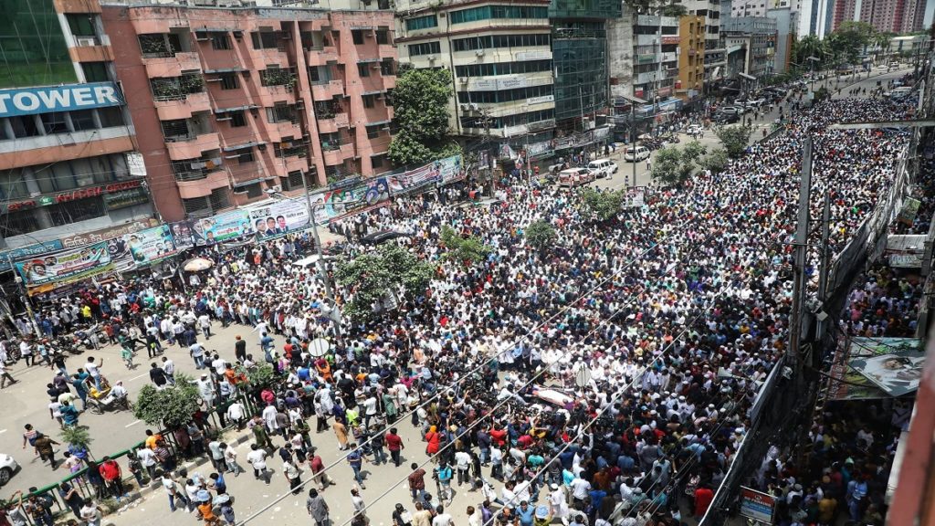 রাজধানীর নয়াপল্টনে বিএনপি কার্যালয়ের সামনে ভোলা জেলা ছাত্রদলের সভাপতি নূরে আলমের জানাজা সম্পন্ন হয়েছে। বৃহস্পতিবার (৪ আগস্ট) দুপুর ১টার দিকে তার জানাজা অনুষ্ঠিত হয়। এরপর তার লাশবাহী গাড়ি ভোলার উদ্দেশে রওনা হয়েছে।