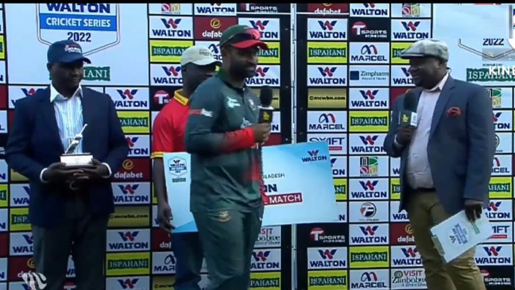 ব্যাটে বলে অনবদ্য অবদানের স্বীকৃতিস্বরূপ ম্যান অফ দ্য মাচের পুরস্কার জিতেন সিকান্দার রাজা।