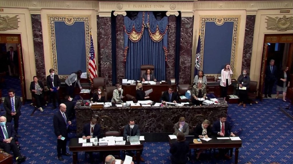দীর্ঘ ১৮ মাস তর্ক-বিতর্কের পর কাঙ্খিত লক্ষ্য অর্জন হয় ক্ষমতাসীন ডেমোক্র্যাট দলের। রোববারও (৭ আগস্ট) সিনেটে সমান সংখ্যক বা ৫০টি করে ভোট পড়ে প্রস্তাবটির পক্ষে-বিপক্ষে। তবে, ভাইস প্রেসিডেন্ট কমলা হ্যারিস ব্যবহার করেন বিশেষ ক্ষমতা বা টাইব্রেকার ভোট। তাতে মাত্র এক ভোটের ব্যবধানে পাস হয় বিলটি।