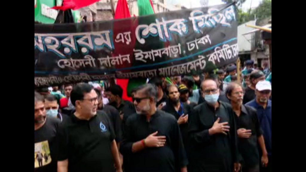 মঙ্গলবার (৯ আগস্ট) সকালে হোসেনী দালান থেকে তাজিয়া মিছিল শুরু হয়েছে। মিছিলটি বক্সিবাজার, লালবাগ, আজিমপুর ঘুরে ঝিগাতলা গিয়ে শেষ হবে। এর আগে সকাল থেকে হোসেনী দালানের ভেতরে মাতম করেন শিয়া সম্প্রদায়ের লোকেরা। পুরান ঢাকা ছাড়াও রাজধানীর আশপাশের বিভিন্ন এলাকা থেকেও জড়ো হয়েছেন অনেকে। হিজরি ৬১ সনের ১০ মহররম এই দিনে মহানবী হযরত মুহাম্মদ (সা.) এর দৌহিত্র হযরত ইমাম হোসেইন (রা.) এবং তার পরিবার ও অনুসারীরা সত্য ও ন্যায়ের পক্ষে যুদ্ধ করতে গিয়ে ফোরাত নদীর তীরে কারবালা প্রান্তরে ইয়াজিদ বাহিনীর হাতে শহীদ হন। ইসলামের মহান আদর্শকে সমুন্নত রাখতে তাদের এই আত্মত্যাগ মানবতার ইতিহাসে সমুজ্জ্বল হয়ে রয়েছে।