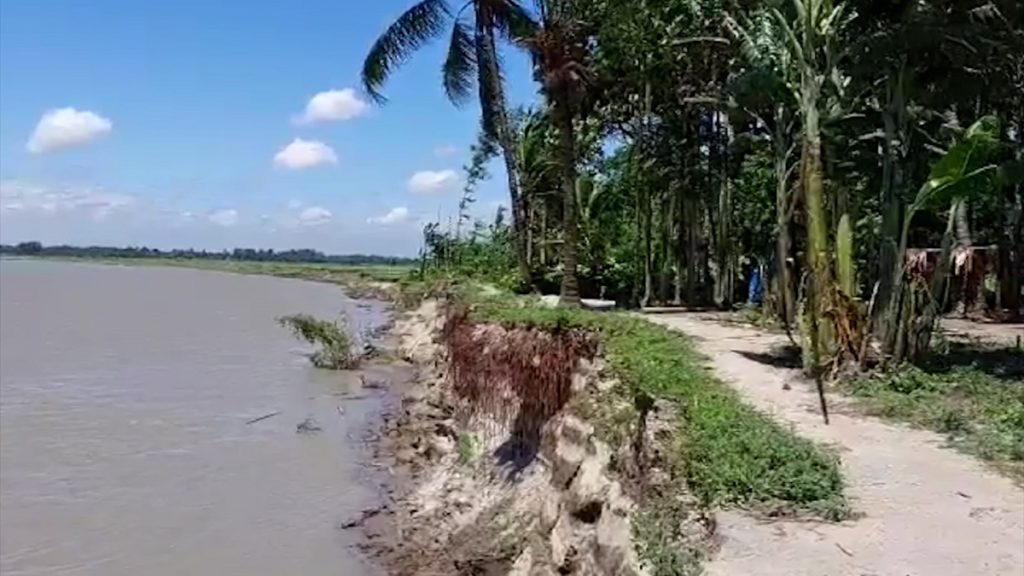 গত কয়েকদিনে ৫০ একর জমি নদে বিলীন হয়েছে। হারিয়ে গেছে প্রায় এক কিলোমিটার কাঁচা সড়ক। ফসলি জমি ও বাড়িঘর রক্ষায় দ্রুত একটি টেকসই বেড়িবাঁধ নির্মাণের দাবি জানিয়েছেন এলাকাবাসী।