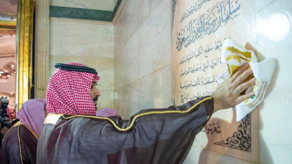 প্রথমবারের মতো পবিত্র কাবা শরিফ পরিষ্কার-পরিচ্ছন্নতার কাজে অংশ নিলেন সৌদি যুবরাজ মোহাম্মদ বিন সালমান। বাদশাহ অসুস্থ থাকায় সোমবার (১৫ আগস্ট) এ কাজে তার প্রতিনিধিত্ব করেন ক্রাউন প্রিন্স।