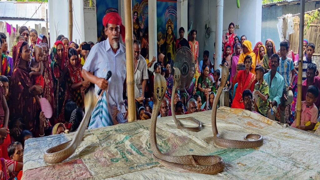 সাপের খেলা দেখতে আসা মিনতী রাণী জানান, পাশের চুয়াডাঙ্গা জেলা থেকে তিনি এই পূজা এবং সাপের খেলা দেখতে বাবার বাড়িতে এসেছেন। মনসা পূজাকে ঘিরে তাদের সাথে আদিবাসি সম্প্রাদয়ের মধ্যে নতুন একটা সম্পর্ক গড়ে ওঠে।