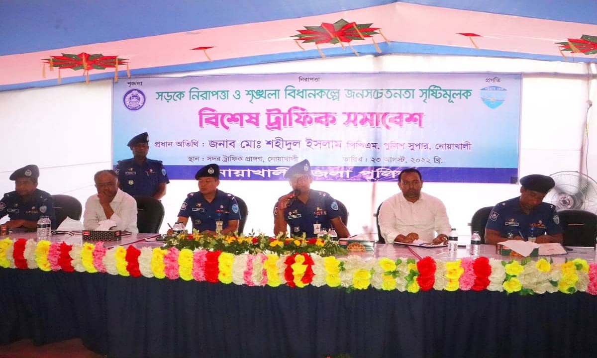 সড়কে নিরাপত্তা ও শৃঙ্খলা ফেরাতে নোয়াখালীতে জনসচেতনতা সৃষ্টিমূলক বিশেষ ট্রাফিক সমাবেশ অনুষ্ঠিত হয়েছে।