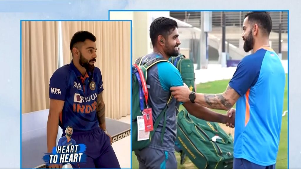 ক্রিকইনফোকে দেয়া সাক্ষাৎকারে ভিরাট কোহলি বলেন, ২০১৯ বিশ্বকাপে ম্যানচেস্টারে ম্যাচের সময় বাবর আজমের সাথে আমার প্রথম দেখা হয়। বয়সভিত্তিক ক্রিকেটেই ইমাদ ওয়াসিমের বিরুদ্ধে খেলেছি। ইমাদ বললো, বাবর বসে আছে। সে আমার সাথে কথা বলতে চায়। আমরা ক্রিকেট এবং আরও অন্য অনেক কিছু নিয়েই কথা বলি। প্রথম দিন থেকেই বাবরের মাঝে সম্মান এবং সৌজন্যবোধ দেখতে পাই। বাবর সম্ভবত এখন সব ফরম্যাটেই বিশ্বের সেরা ব্যাটার। তবুও তার সম্মান ও সৌজন্যবোধ এখনও পাল্টায়নি। সব ফরম্যাটেই ধারাবাহিকভাবে দারুণ খেলে চলেছে সে। তার প্রতিভাও অসাধারণ। তাকে ব্যাট করতে দেখাই চমৎকার ব্যাপার।