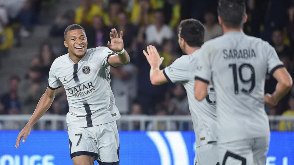 শুরুর একাদশে চারটি পরিবর্তন নিয়ে মাঠে নামে পিএসজি। একাদশে ছিলেন না ব্রাজিলীয় তারকা নেইমার জুনিয়র। ম্যাচের ১৮তম মিনিটে পাল্টা আক্রমণে গোল করে পিএসজিকে এগিয়ে দেন এমবাপ্পে। নিজেদের সীমানা থেকে বল পায়ে অনেকটা এগিয়ে ডি-বক্সে বাঁ দিকে এমবাপ্পেকে পাস দেন মেসি। ফাঁকায় বল পেয়ে ঠাণ্ডা মাথায় নতেঁর জালে বল পাঠান এমবাপ্পে।